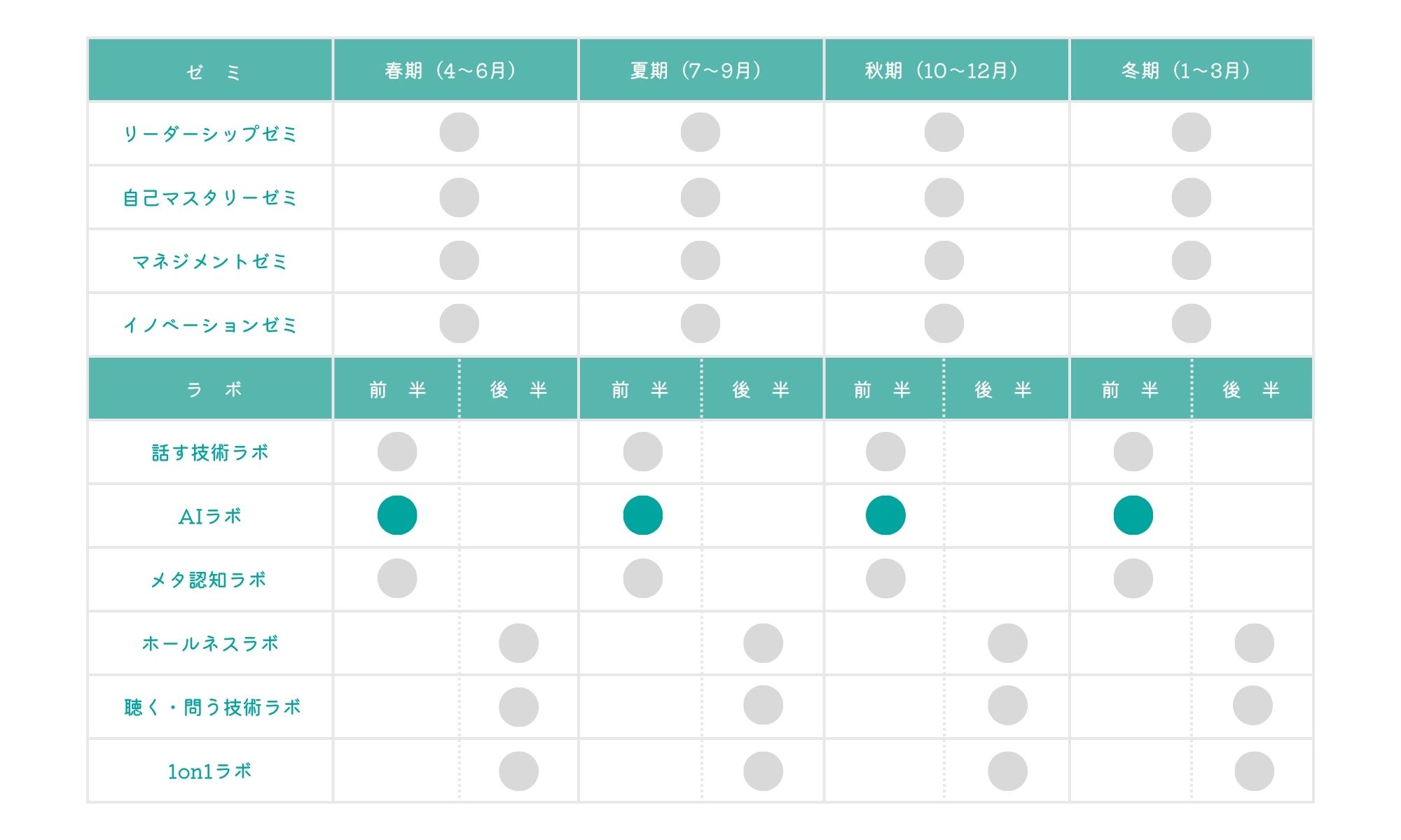 〜 年に4回、各期の前半に開講します 〜